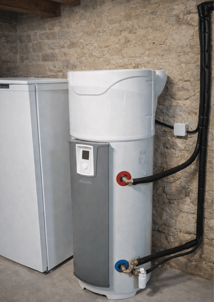 Dans une maison où l’air intérieur manque, le chauffe-eau thermodynamique à air extérieur s’appuie sur la captation des calories de l’air extérieur via des gaines. Une pompe à chaleur intégrée au ballon assure la production et stockage de l’eau chaude sanitaire, avec indépendance vis-à-vis de l’air intérieur et un fonctionnement stable quelle que soit la configuration du logement.